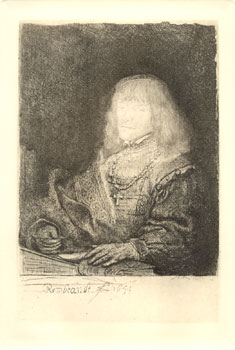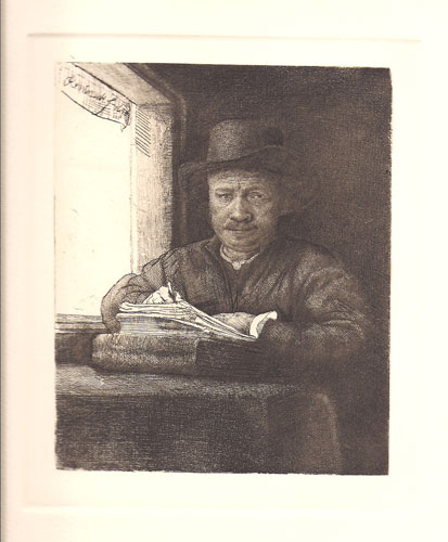 after Rembrandt - Bartsch #22 Self Portrait drawing at a window |