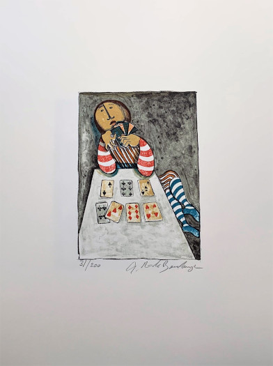 Playing cards with 2 Decks, 5 Dices and Signed Original lithograph Trio.