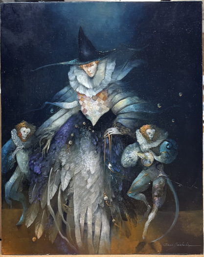 Playing cards - Queen of Clubs with original pencil drawing remarque |
